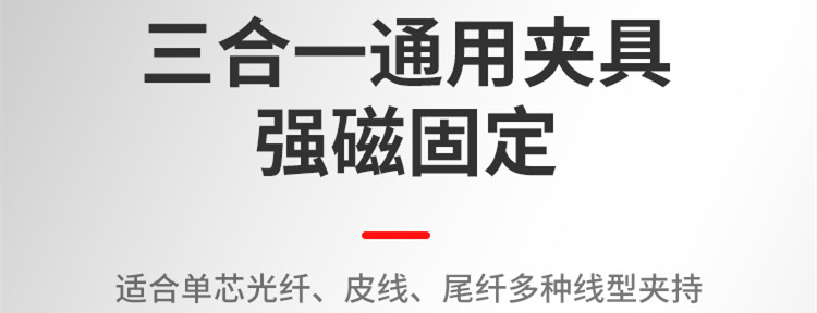 4. 标配组合夹具适合单芯光纤的多种线型夹持,可选配更换带芯夹具